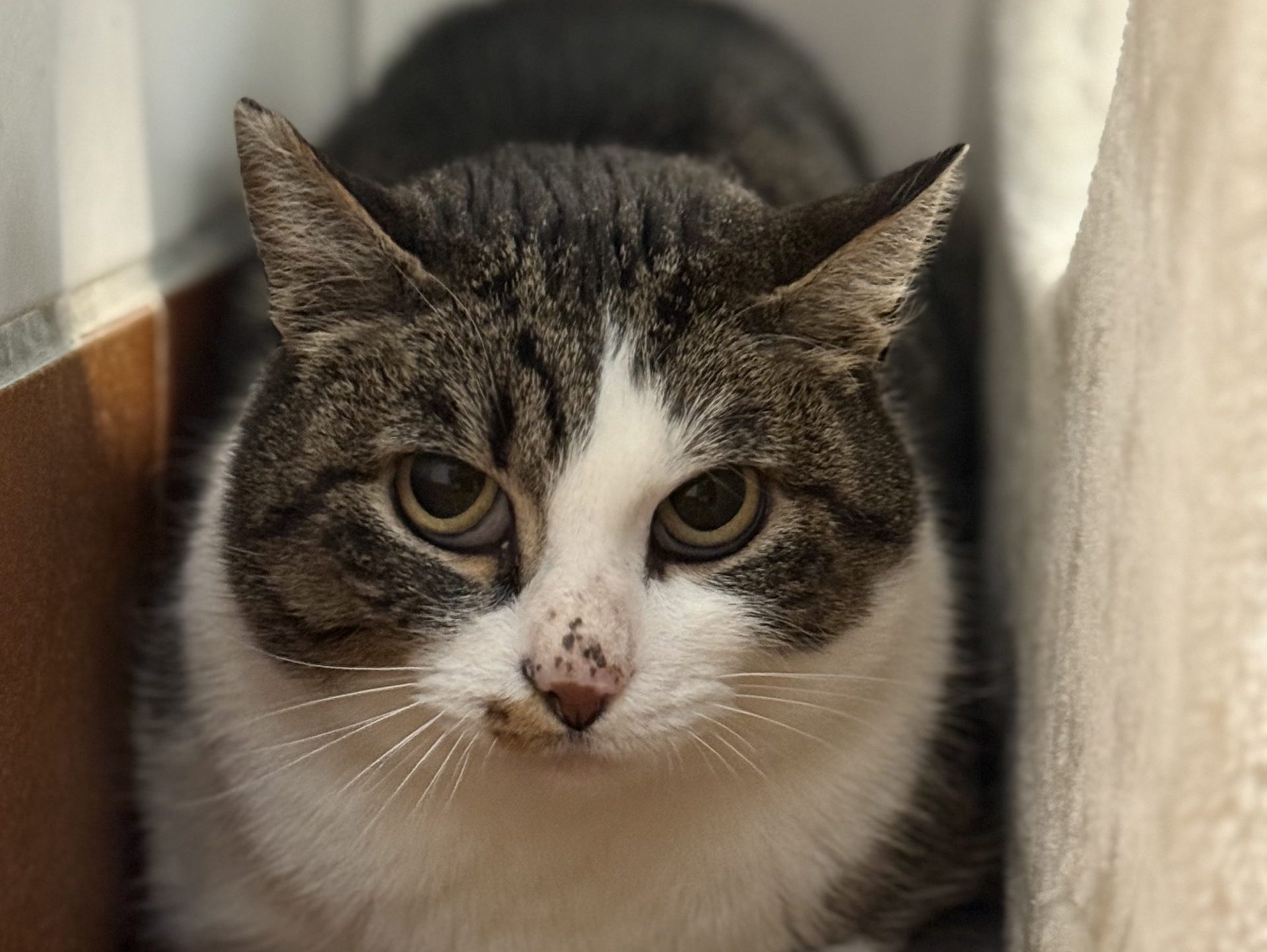 Ich gehöre schon zu den Senioren, aber noch zu den jüngeren Senioren. Den Weg ins Tierheim hab ich als Fundkatze gefunden, daher ist nichts über meine Vergangenheit bekannt.