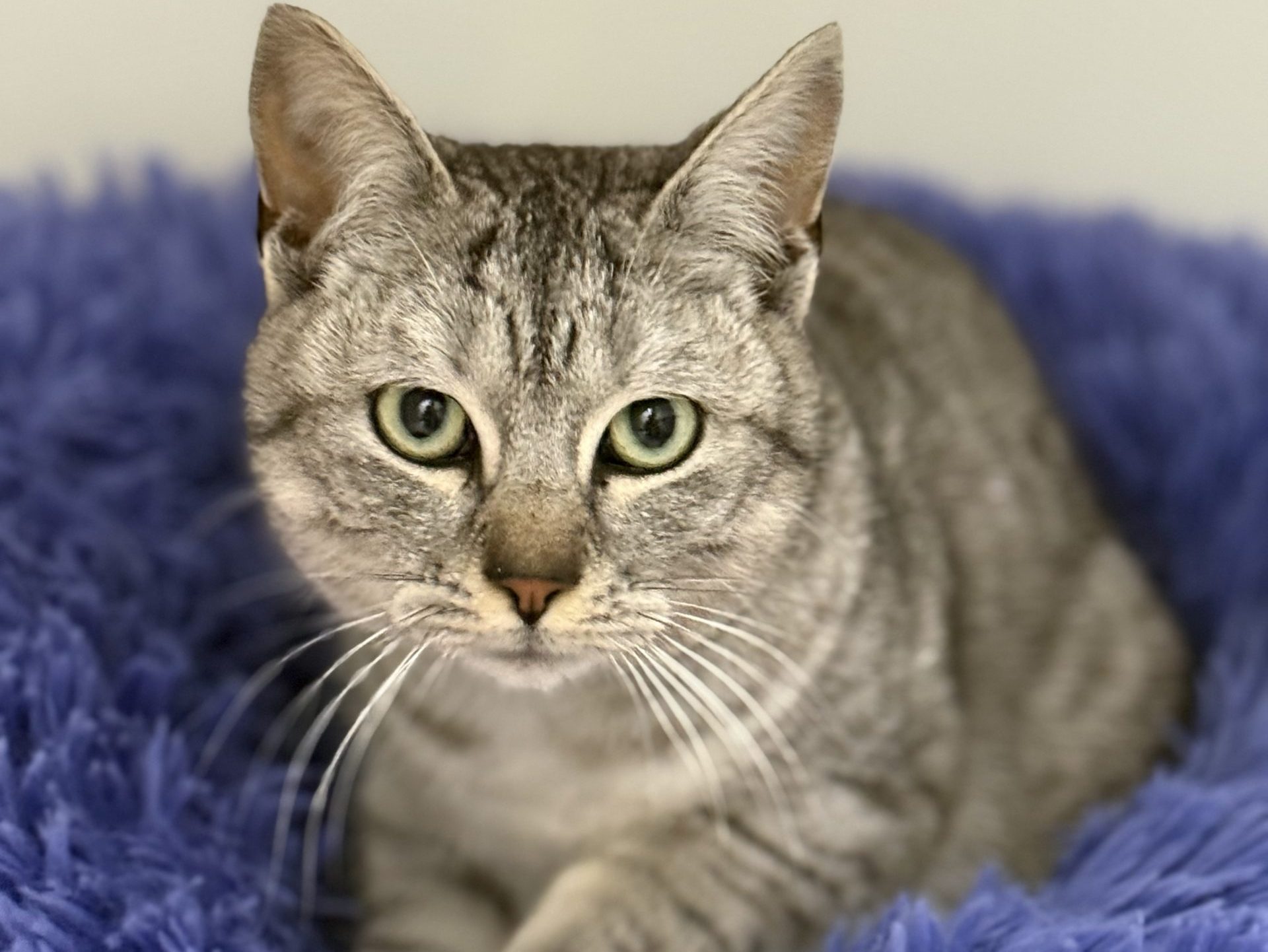 Sie folgt einem im Tierheim auf Schritt und Tritt und kann so laut schnurren. Sie ist gerne mit dabei.