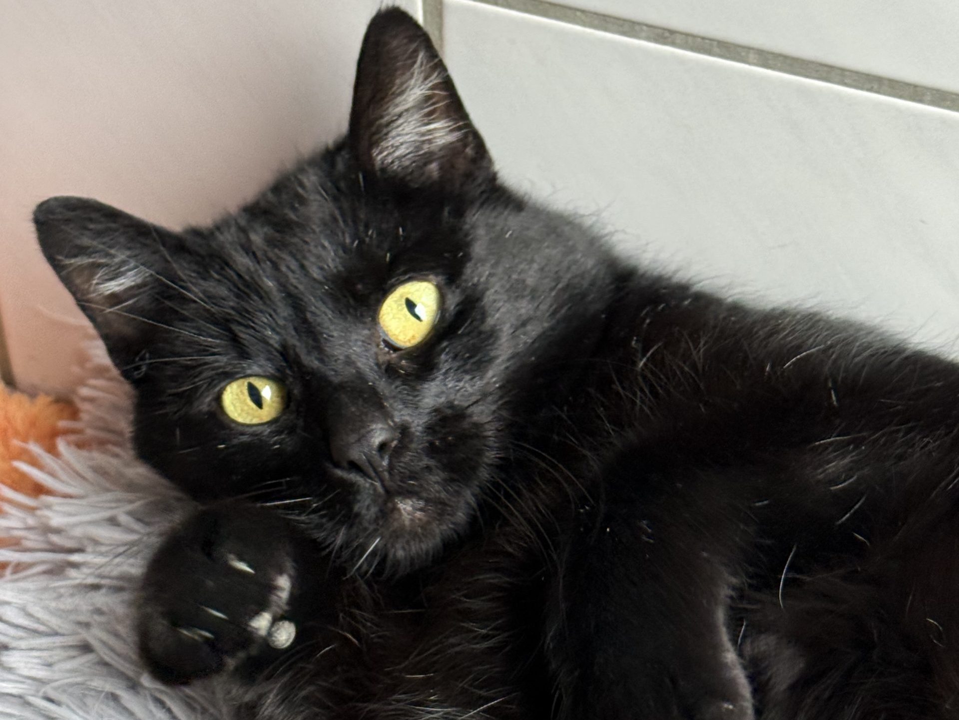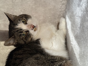 Mit Menschen bin ich noch sehr vorsichtig, aber Artgenossen mag ich sehr gerne und bin eine gute Zweitkatze.